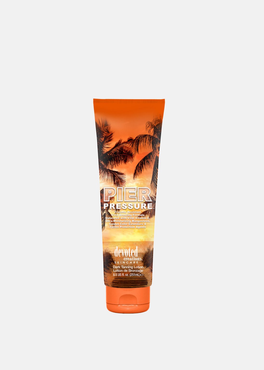 Neem je kleur mee op een wandeling over de boulevard met Devoted Creations’ Pier Pressure™! Dit aan de kust gemaakte mengsel bevat donkere bronzing ingrediënten voor zonovergoten resultaten zonder ongewenste effecten. Doordrenkt met mega hydraterende mangosteen, sappige granaatappel extracten en een scheutje vitamine C, zit deze voedende crème boordevol antioxidanten om je huid stralend en jeugdig te houden. Met donkere tanning ingrediënten die tot lang na zonsondergang blijven werken, blijft je huid het hele jaar door levendig en zonovergoten! Als je op zoek bent naar een prachtige bruine kleur, rijd dan mee op de vloedgolf voor bruiningsresultaten die alleen worden bereikt met Pier Pressure™!